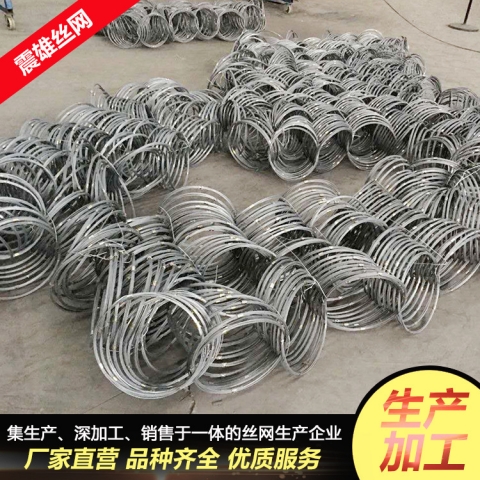 環(huán)形防護網(wǎng)的生產(chǎn)工藝:環(huán)形被動防護網(wǎng)的每個環(huán)都是采用金屬絲加工而成的,將金屬環(huán)多圈圍成一個環(huán),然后用金屬套將環(huán)形的幾股金屬絲固定、套牢。在生產(chǎn)的過程中每個換裝需要套接周圍四個環(huán),每個環(huán)都不能套錯。